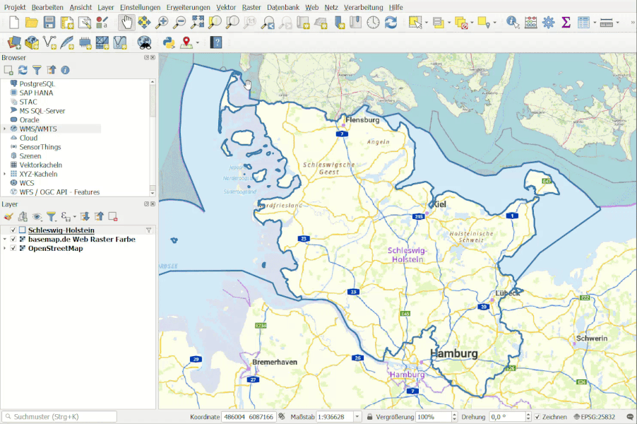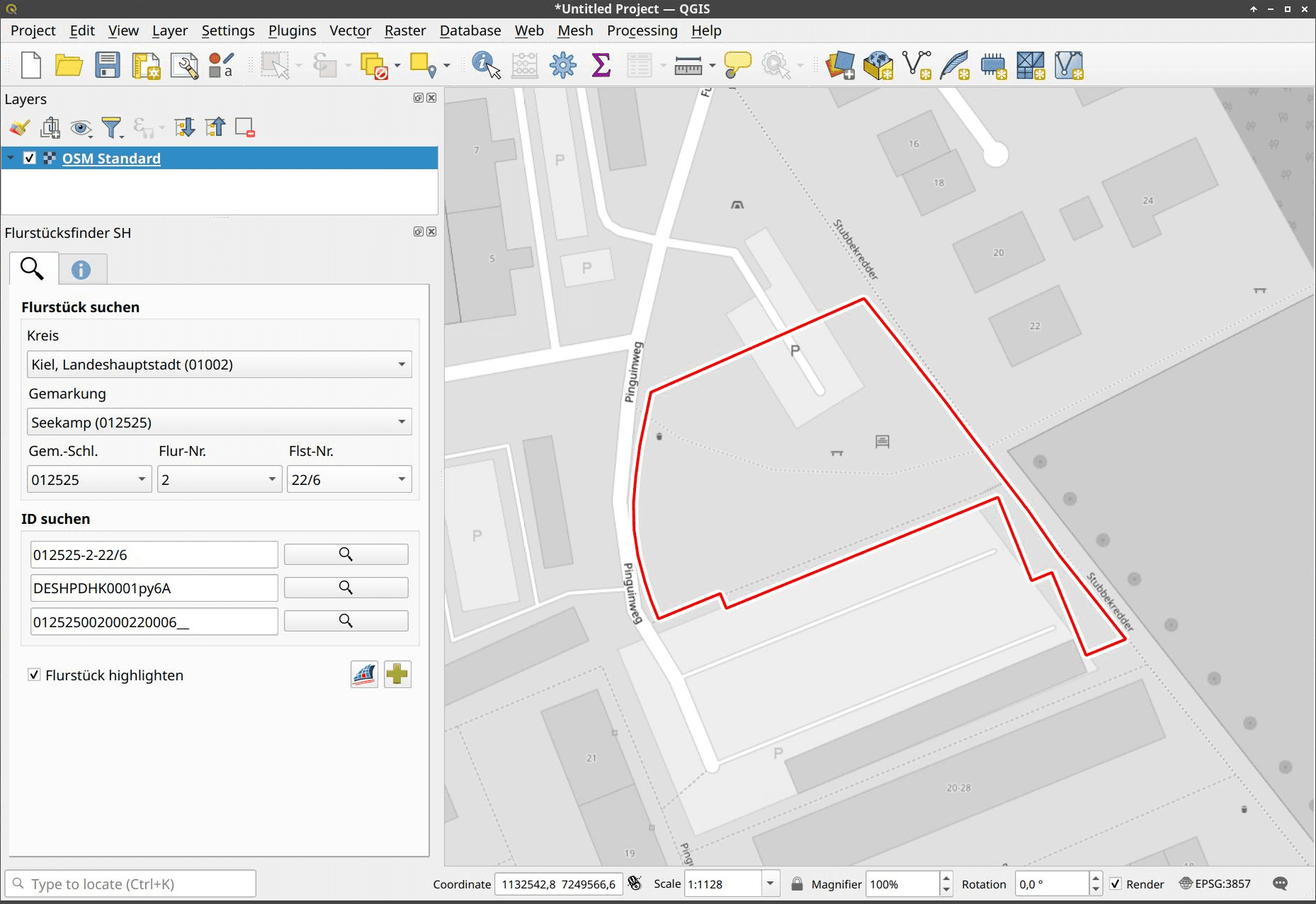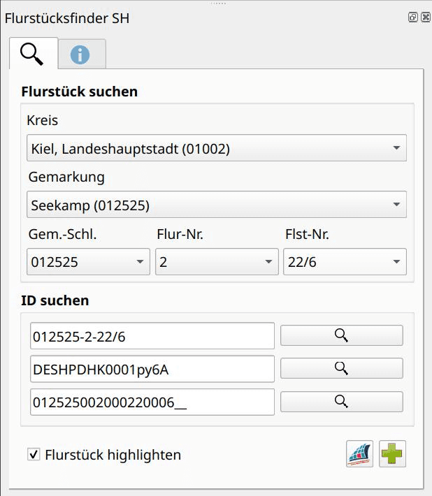 Find and display parcels (German State of Schleswig-Holstein) - Flurstücke innerhalb von Schleswig-Holstein mit QGIS finden