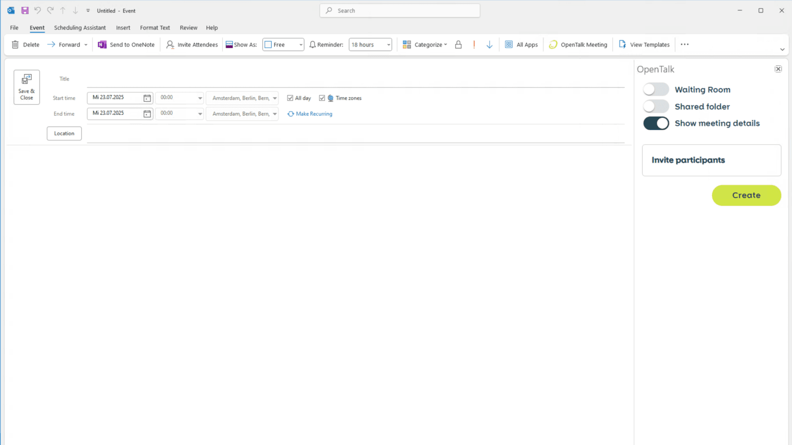 Als zukunftssichere Lösung richtet sich das OpenTalk Outlook Add-In an Behörden, Bildungseinrichtungen und Unternehmen, die Wert auf DSGVO-konforme Videokonferenzen und digitale Souveränität legen. Derzeit verfügbar für OpenTalk On Premises.