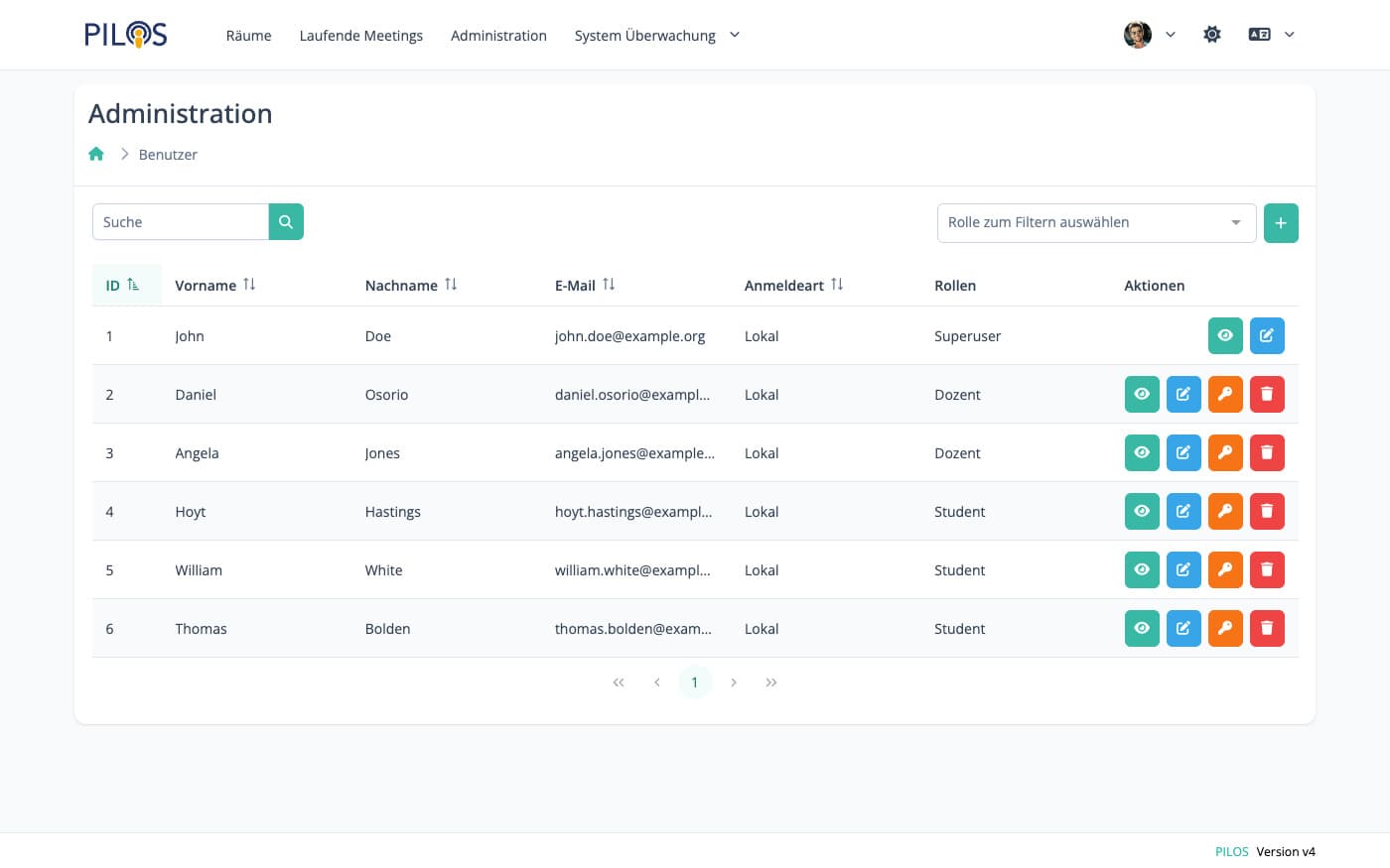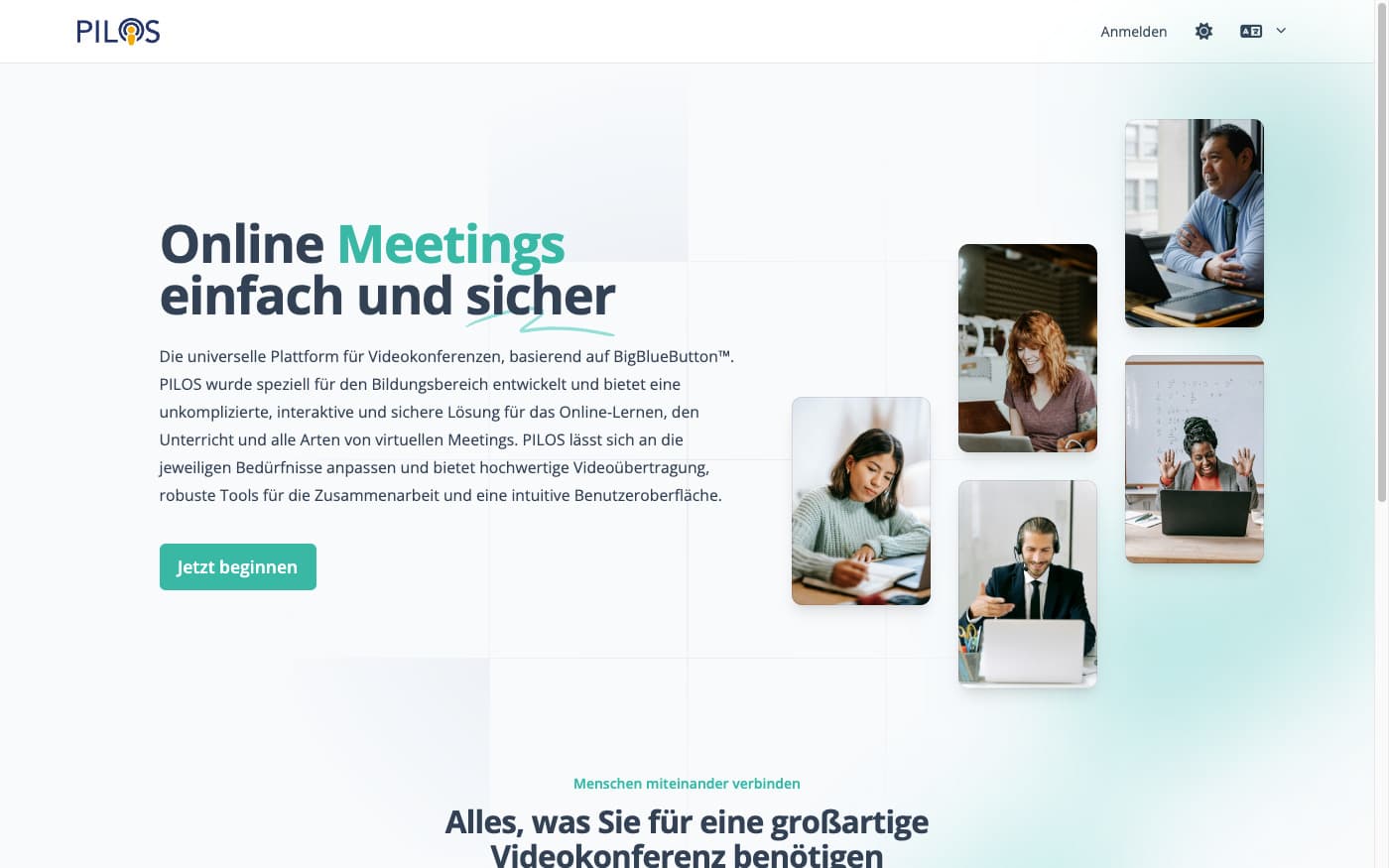 Die universelle Plattform für Videokonferenzen, basierend auf BigBlueButton™. PILOS wurde speziell für den Bildungsbereich entwickelt und bietet eine unkomplizierte, interaktive und sichere Lösung für das Online-Lernen, den Unterricht und alle Arten von virtuellen Meetings. PILOS lässt sich an die jeweiligen Bedürfnisse anpassen und bietet hochwertige Videoübertragung, robuste Tools für die Zusammenarbeit und eine intuitive Benutzeroberfläche.