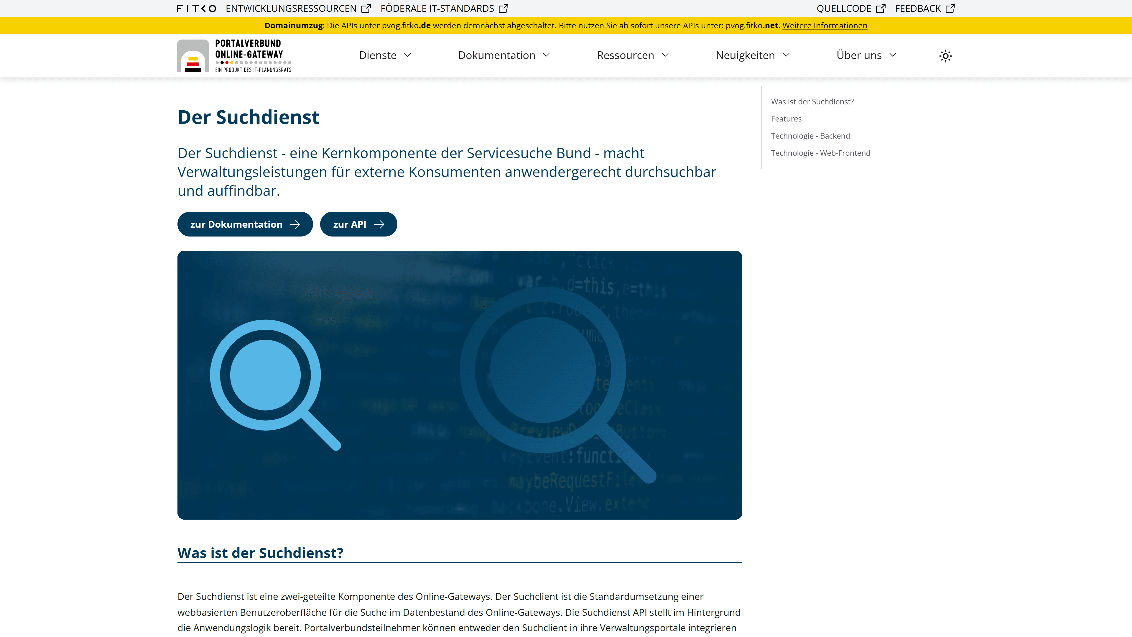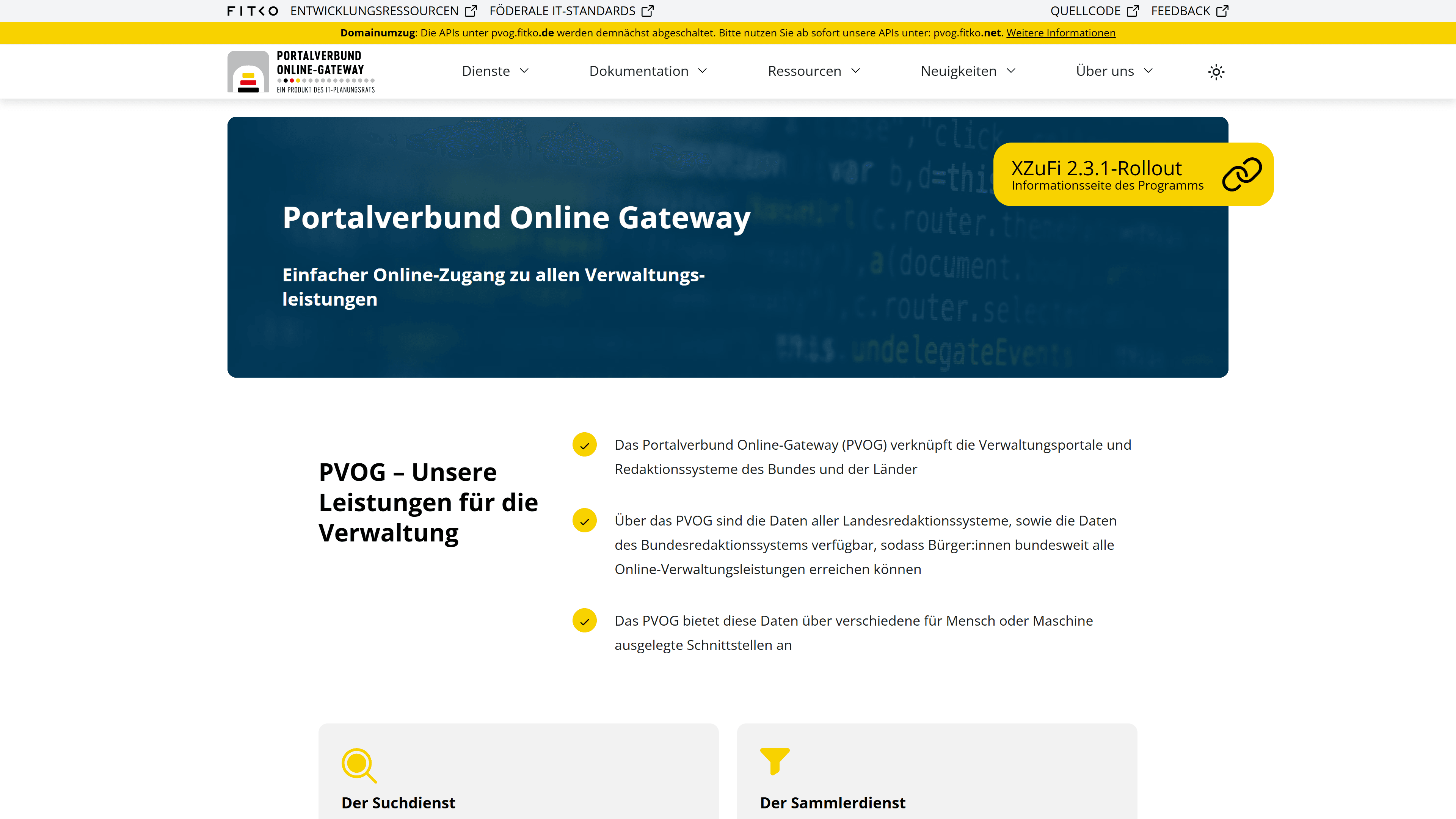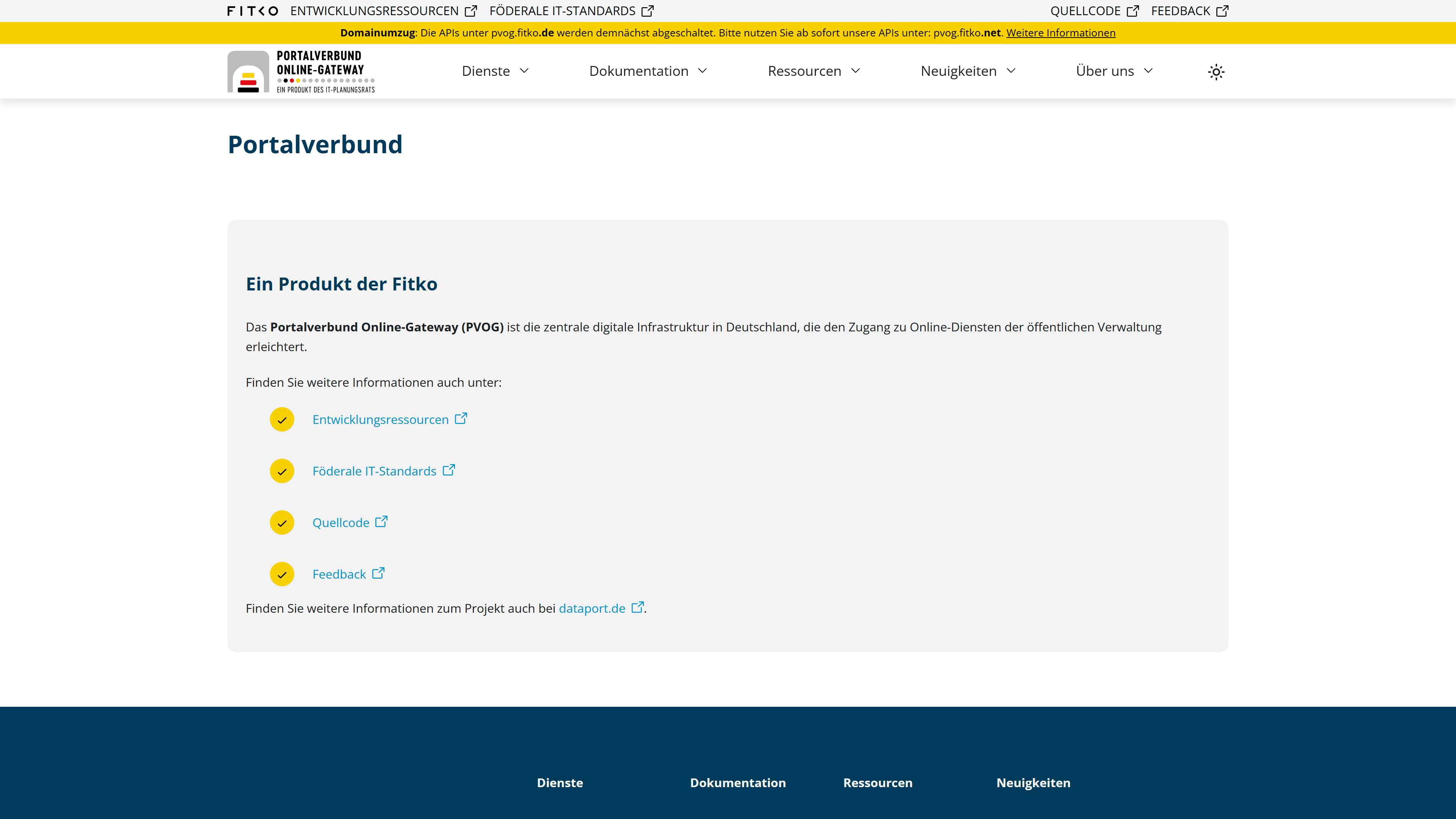 Webanwendung mit Informationen, Dokumentation und weiterer Unterstützung zum Portalverbund Online-Gateway (PVOG).