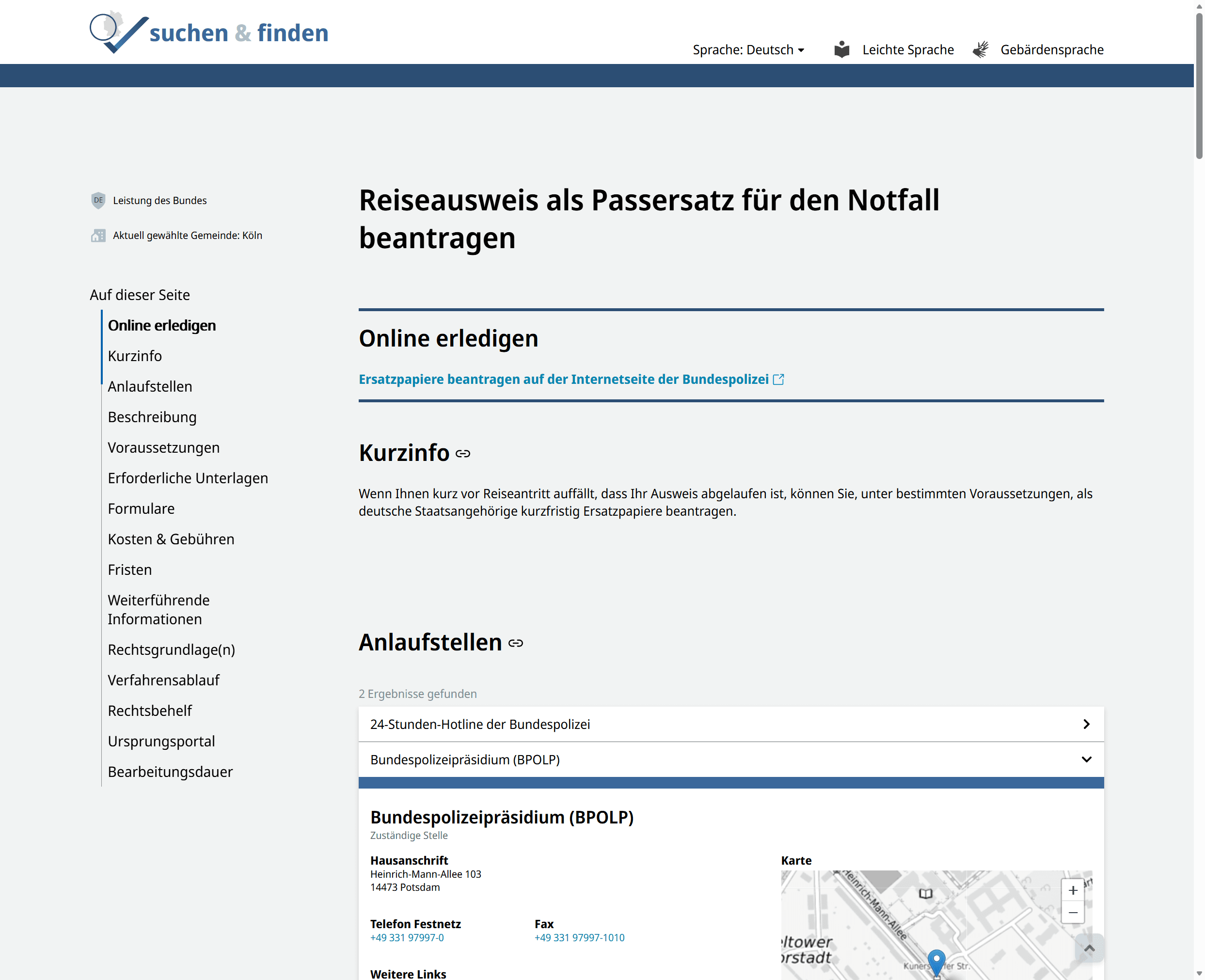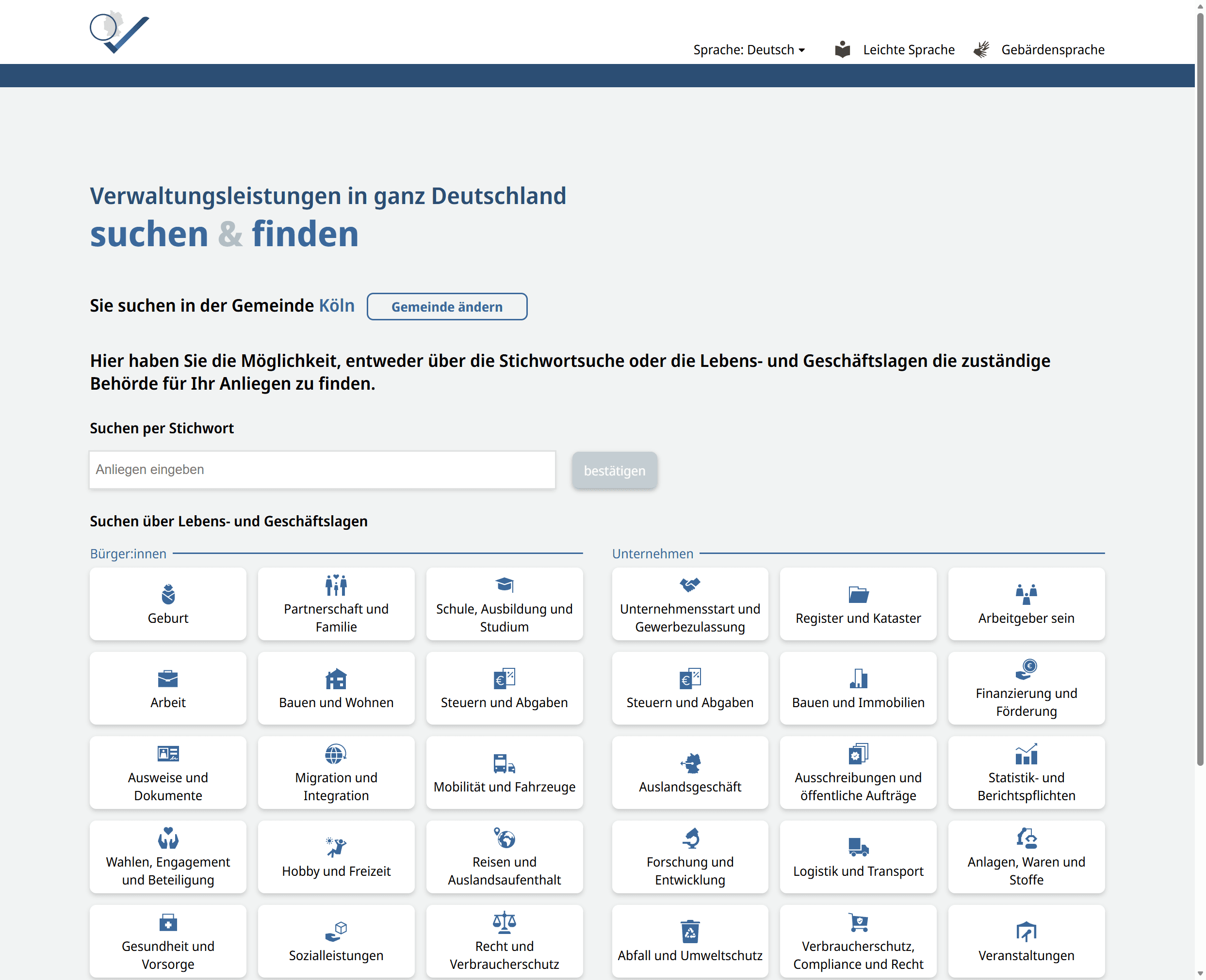 Single-Page-Anwendung für die Suche und Darstellung von Verwaltungsleistungen im Portalverbund Online-Gateway (PVOG).